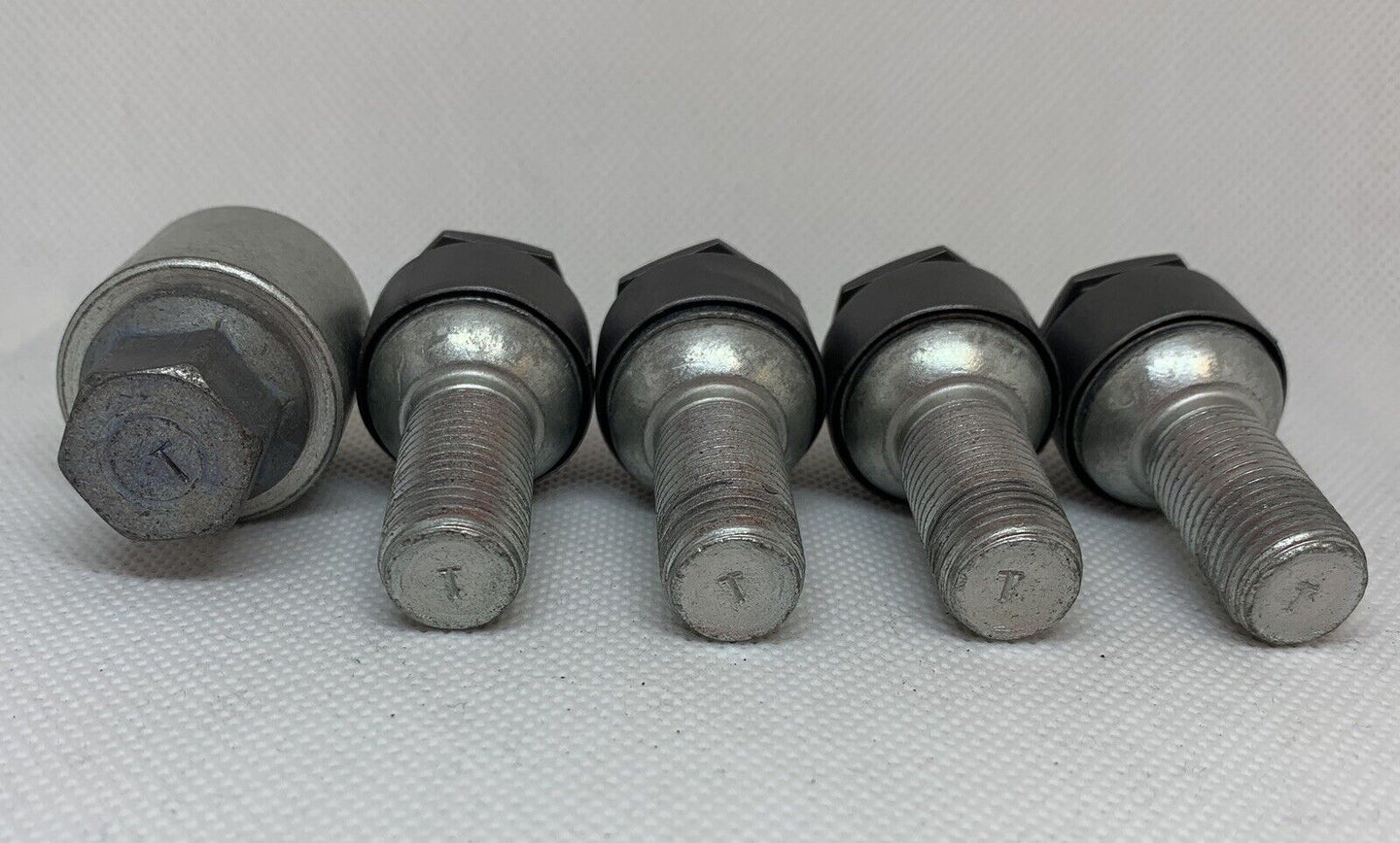 genuine set of 4 Vw Volkswagen locking wheel nuts with caps and key number 777 stamped “T”.